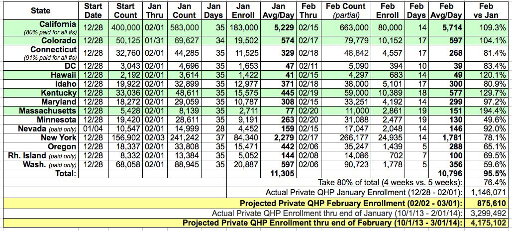 Depending on the actual final February tally, here's the potential final Exchange-based Private QHP Enrollment projections as of the end of the open enrollment period on March 31st:
