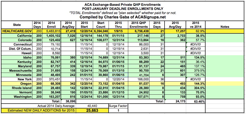 Based on that average, assuming that there isn't any surge of any sort going forward--that is, no jump over the past few days for February coverage, no 33% average jump for the 2nd "quiet period" and not even a hint of a surge over the final 5 days of the enrollment period--the total would end up roughly: