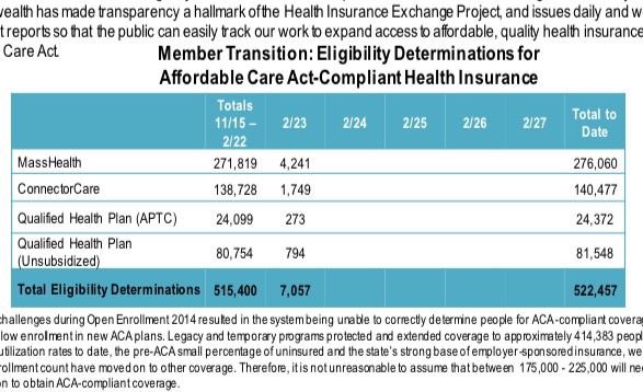 Massachusetts: Final official daily Open Enrollment report: 143K+ QHPs, 276K Medicaid