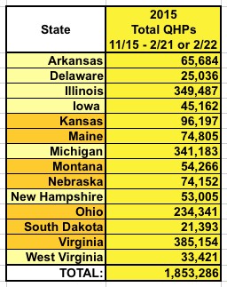 To get that number, first we have to look at how many people will actually be enrolled in those 14 states. As of 2/22/15, all 14 only added up to around 1.85 million people...and of course you then have to chop that down a bit: