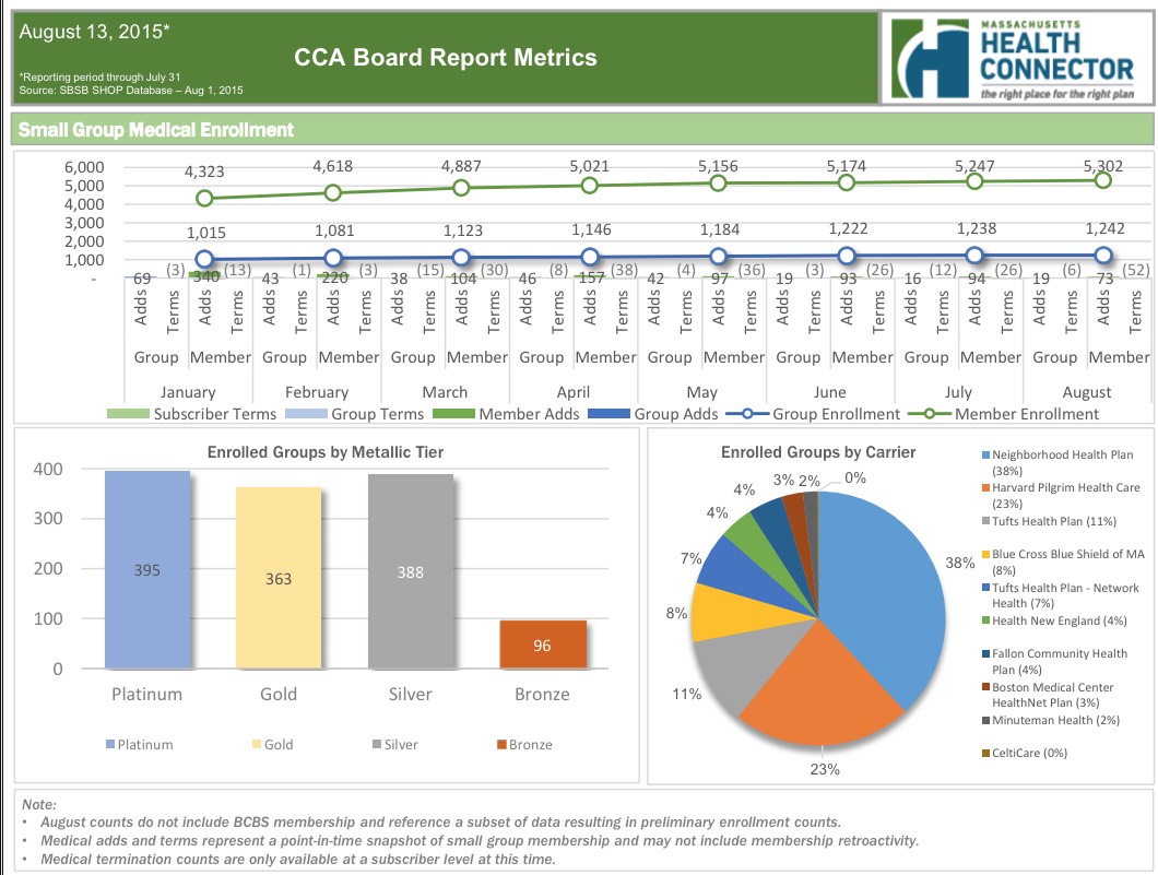 The Massachusetts Health Connector just held their monthly board meeting this morning, and have released the July dashboard report with a whole mess of demographic data for Baystate-obsessed nerds to revel in.
