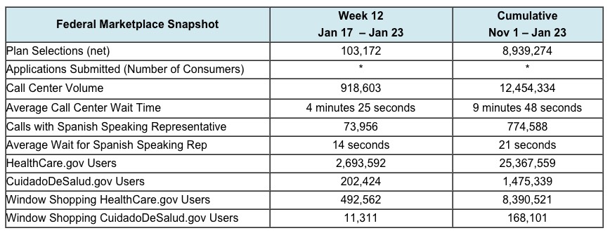 Overall, net plan selections for Week 12 totaled 103,172. Over the same time period, net new plan selections totaled 144,971. Net new plan selections take into account new plan selections in the reporting week minus any consumer or insurer-initiated cancelations for new plan selections. As a reminder, this year the number of net plan selections accounts for both insurer and consumer-initiated cancellations that occur before the end of Open Enrollment. This is a change from last year, and it will result in a larger number of cancellations being accounted for during, rather than after, Open Enrollment. Last year, cancellations from insurers that happened during Open Enrollment were reflected only in reports on effectuated enrollment after the end of Open Enrollment. There will likely be a smaller difference this year between plan selection totals at the end of Open Enrollment and subsequent effectuated enrollment.