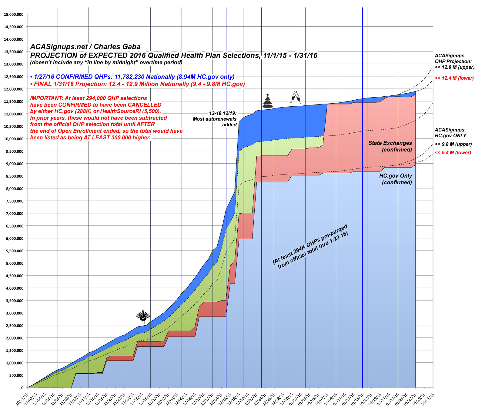 I'm making my final revised call anywhere between 12.4 - 12.9 million QHP selections as of 1/31/16.