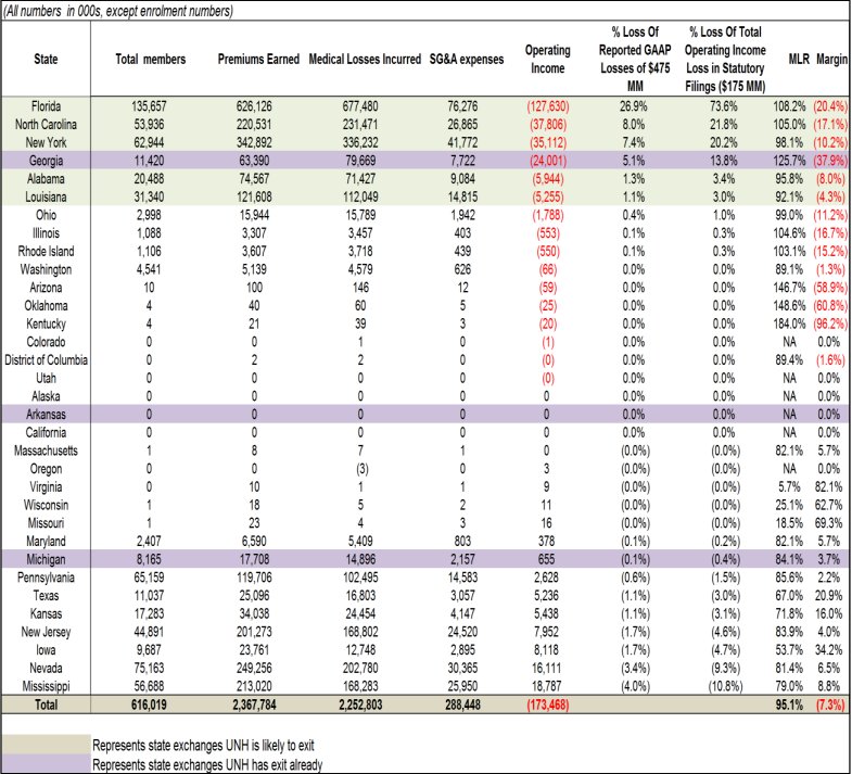 UnitedHealthcare drops off exchange in at least 5 states...but also admits they ARE making money in some places