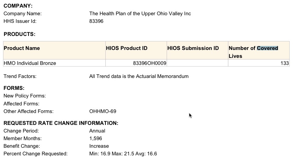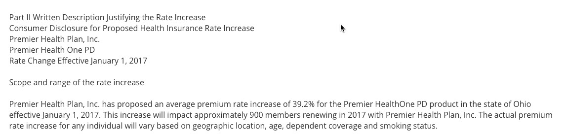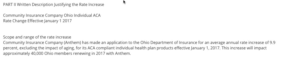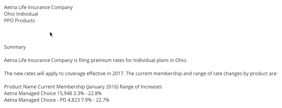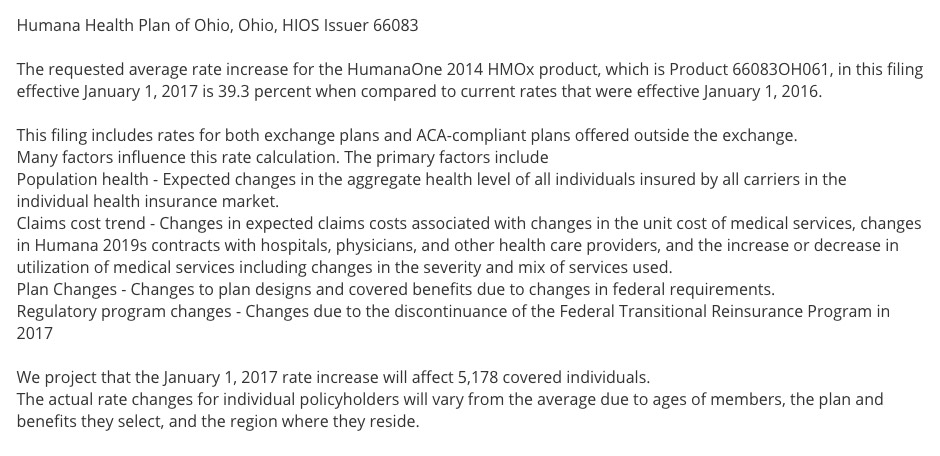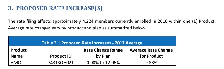 Here's some relatively good news! Ohio's 2017 requested rate filings have finally been published, and considering that some other states are looking at weighted average requested increases of 30%, 40% or even as high as 56%, Ohio's 13.1% average is actually refreshingly low by 2017 standards.