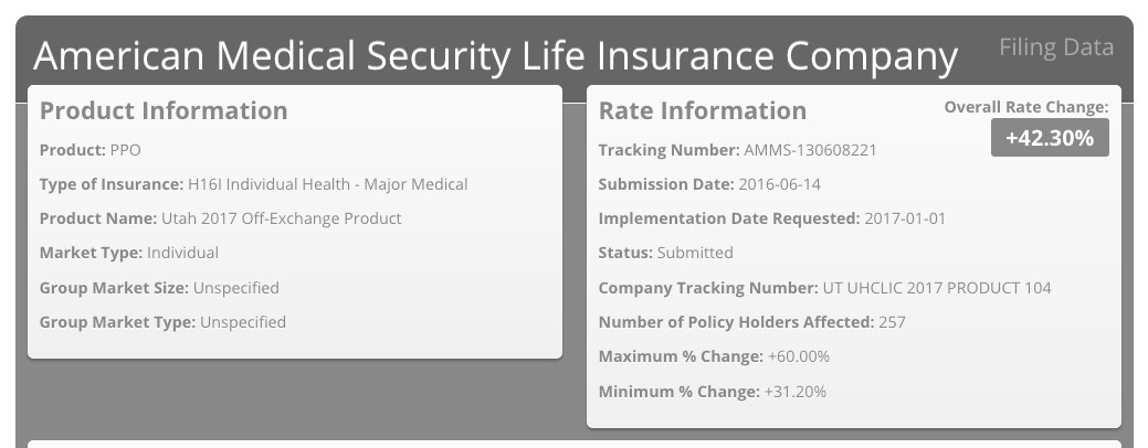 This leaves around 93K unaccounted for. Some of them are presumably enrolled via University of Utah plans; U of U's enrollment numbers are redacted, and while the Utah site claims a 0% rate hike, the RR.HC.gov database lists it as 4.47%.