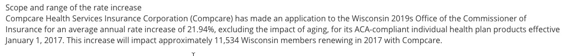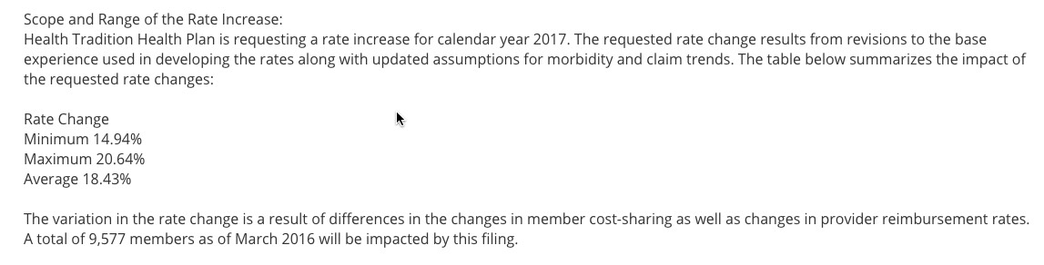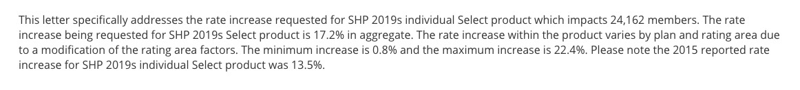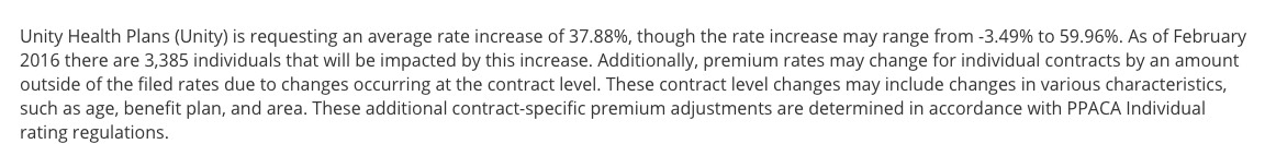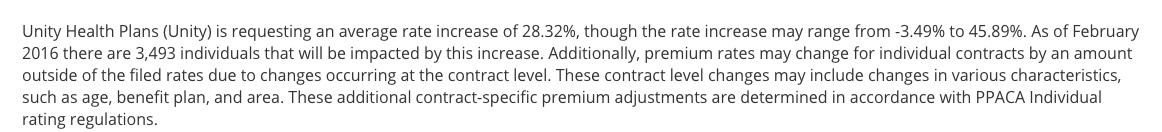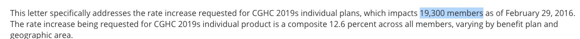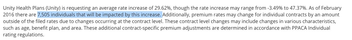 Fortunately, if you eyeball their average rate hikes, it looks to me as though they should mostly cancel each other out: 5.4%, 9.1% and 10.5% vs. 23.7%, 32.4% and 36.4%...if you assume a straight average (which obviously is unlikely, but what else can I do here?), they average out to right around the same 20.0% that the known carriers average.
