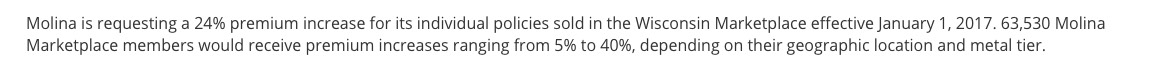 Around 6,600 of these can be found enrolled via Humana, which is dropping out of the Wisconsin market next year; an unknown number appear to be enrolled in UnitedHealthcare plans (the fact that United isn't listed below seems to confirm that WI is among the dozens of states they're also pulling out of). The rest are presumably enrolled in any of the 5 carriers below (Group Health, Managed Health, Network Health Plan, WI Physicians Svc. and WPS). Unfortunately, the enrollment figures for all of these carriers are redacted from public view.