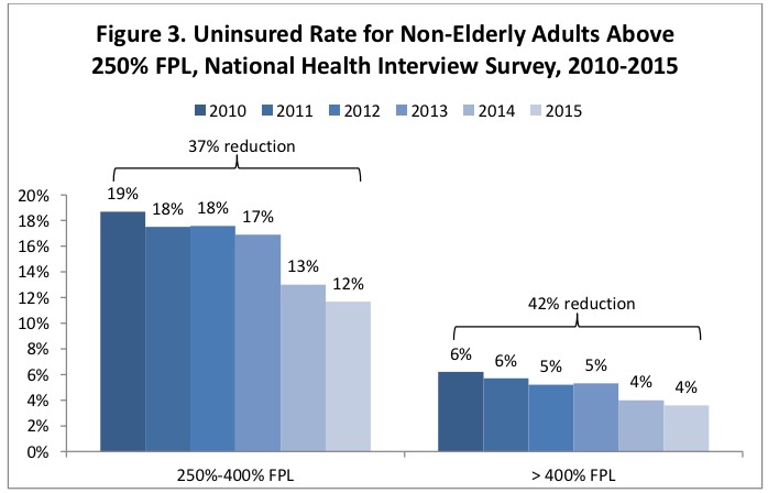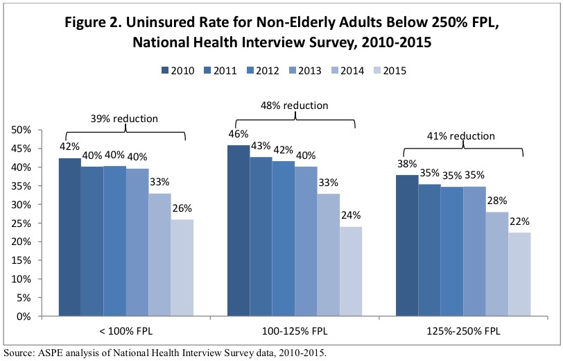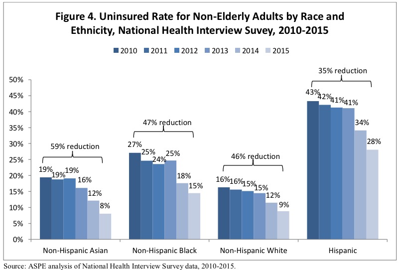 Well, today, the Assistant Secretary for Planning and Evaluation (ASPE) of the HHS Dept. has released an interesting brief which breaks out these numbers by a variety of different criteria, to see how different groups have fared under the ACA. Their conclusion?