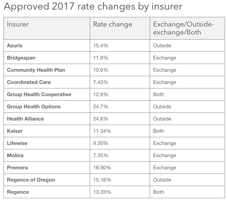 Thirteen health insurers have been approved to sell 154 individual and family plans for 2017. Nine insurers will sell 98 plans in the exchange, Washington Healthplanfinder (www.wahealthplanfinder.org), and seven insurers will sell 56 plans outside of the exchange. The average rate change is 13.6 percent.