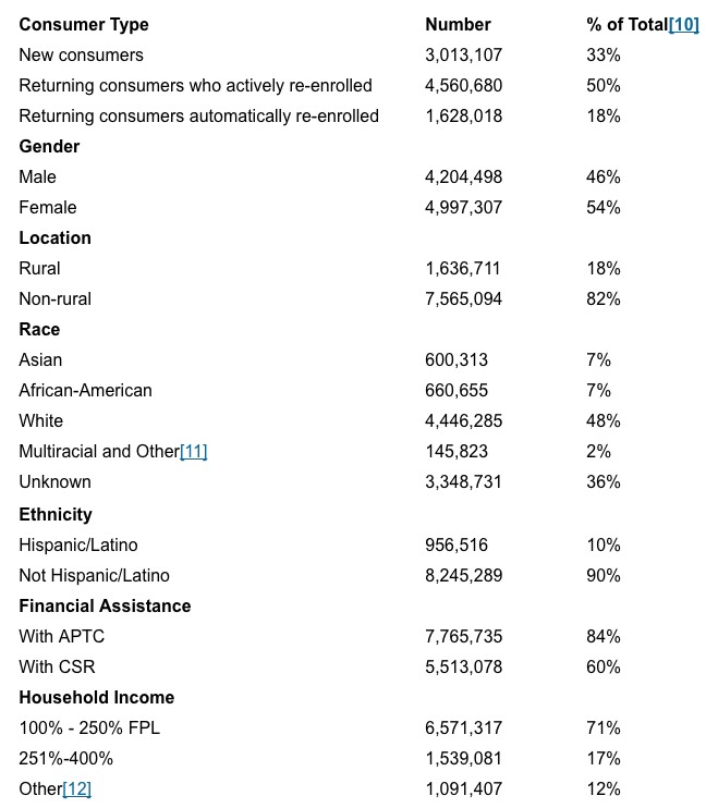 - 3.3 million enrollees are 18-34 years old, or 27% of the total. This is down slightly from the 28% of Young Invincibles that we've seen in past years, likely due to the Trump Administration's last-minute Ad-Kill stunt in the final 5 days of Open Enrollment.