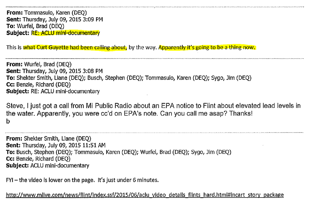 Over the past few months, a bunch of internal emails between Snyder administration officials have been made public, each more appalling than the last. However, there's one in particular which made my blood boil more this morning; this one, from Karen Tommasulo, the Public Information Officer for the Michigan Department of Environmental Quality, from last July (h/t to Hector Solon for bringing it to my attention, though apparently the Detroit Free Press already posted about it back in October):