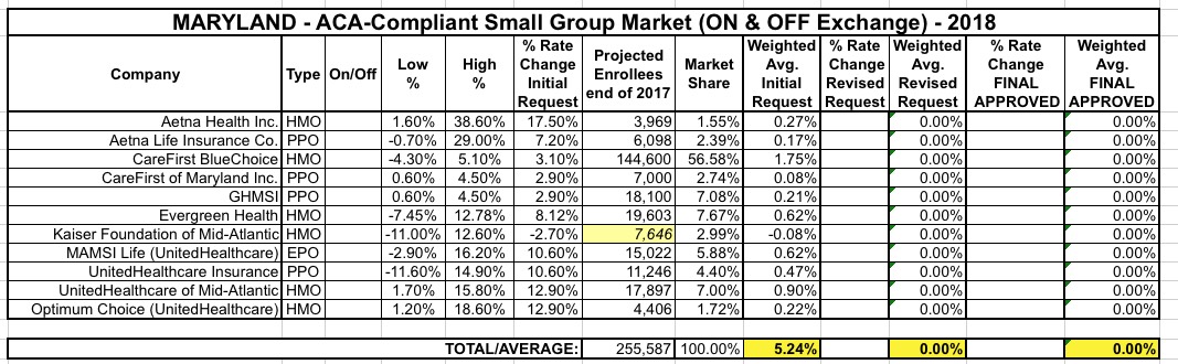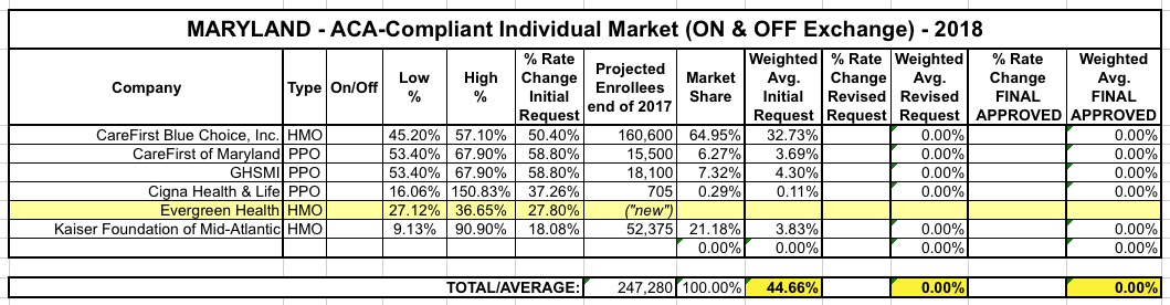 Maryland is the 2nd state to post their initial 2018 rate filings.