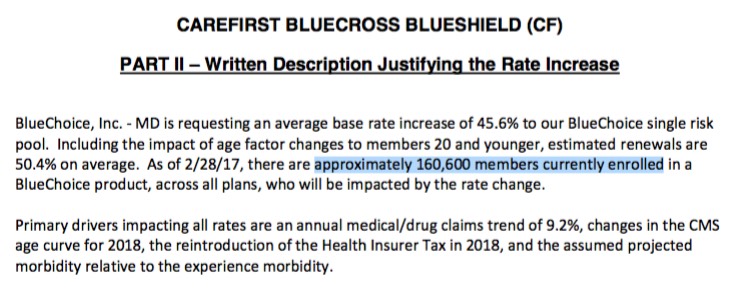 UPDATE: As I've been warning for months, at least one of Maryland's carriers has openly stated that perhaps 40% of their requested rate hike is due specifically to concerns about the Trump administration & the GOP's ongoing sowing of confusion and outright sabotage of the ACA and the individual market.