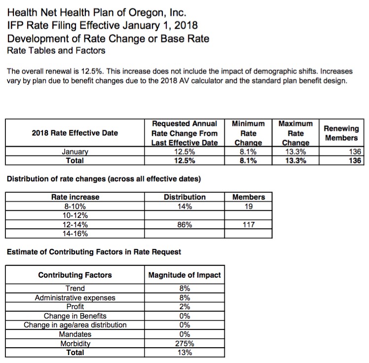 BridgeSpan is also pretty candid about breaking out their increase justification, including an important sentence which David Anderson called to my attention: "Another driver is the expectation that lower cost members are less likely to purchase coverage in 2018."