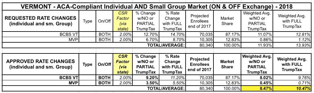 As a result, Vermont has been approved for average rate increases of 8.5% assuming CSR payments continue for all of 2018...or around 10.5% assuming they aren't: