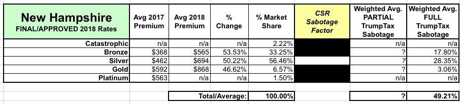 New Hampshire: Approved (?) unsubsidized rate hikes: ~52%; 5.2 pts due to CSRs (?)