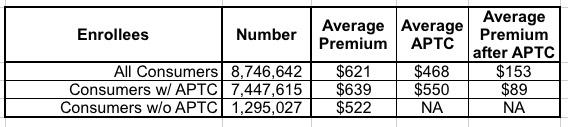 • Among consumers using HealthCare.gov, the average premium before application of the tax credit was $621 during the 2018 OEP and $476 during the 2017 OEP.