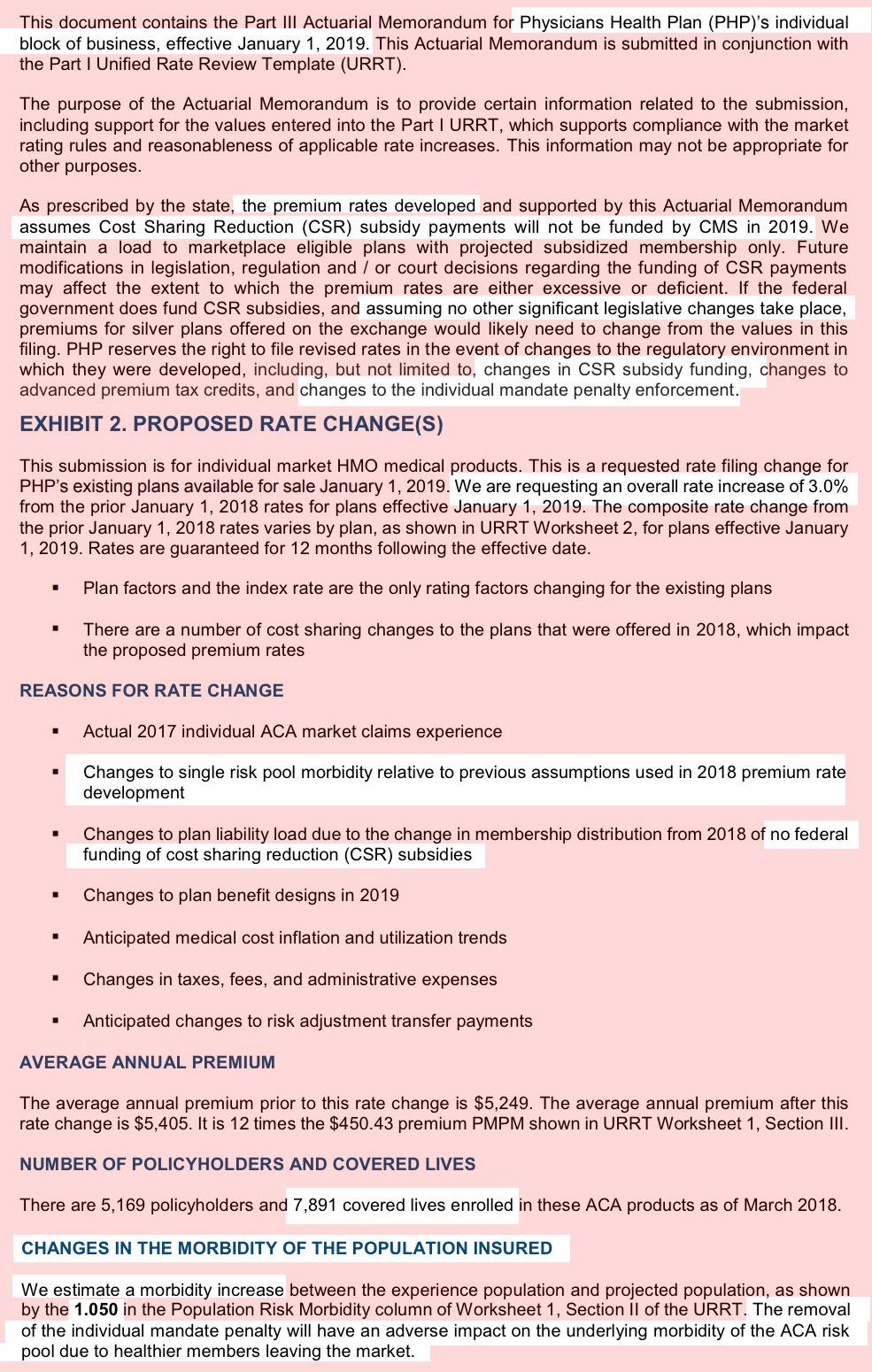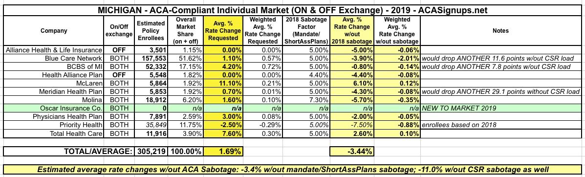 One thing I find very interesting is that Blue Cross, Blue Care Network and Meridian Health Plan, which comprise around 77% of the total individual market, made a point of mentioning the CSR load factor due to last year's sabotage efforts by Donald Trump. In summary: