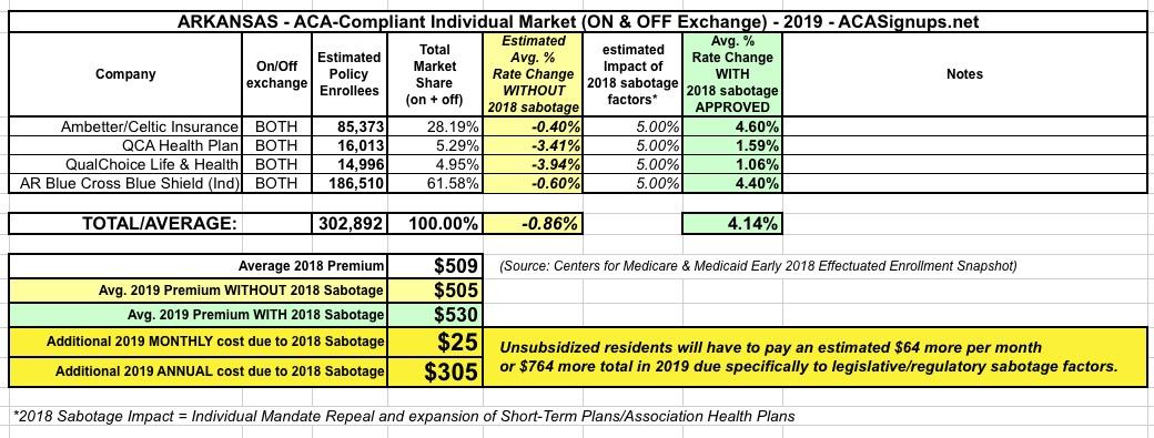 Arkansas: APPROVED 2019 ACA rate hikes: 4.1%, but would have DROPPED by ~1% w/out #ACASabotage