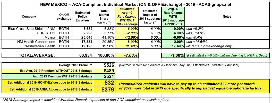 New Mexico: APPROVED 2019 #ACA rate changes: 1% drop, would likely drop 5-6% w/out #ACASabotage