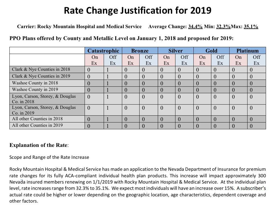 I ran the numbers for Nevada's preliminary 2019 ACA individual market rate changes back in July. At the time, the average requested rate increase was around 2.3% statewide.