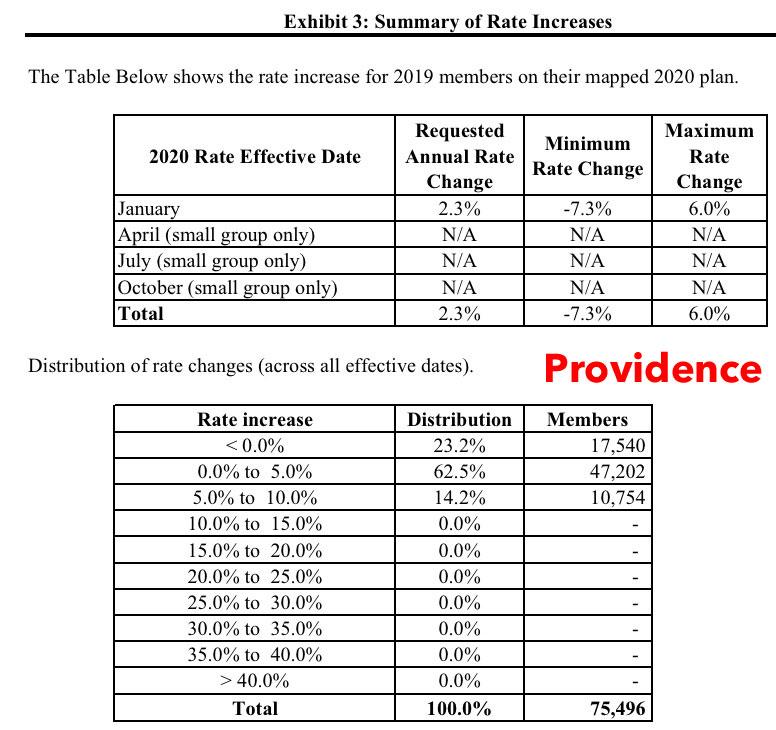 That seems to be pretty cut & dry: Preliminary requested rate changes ranging from a 3.2% drop to a 13.5% increase on the individual market, averaging 3.3%.