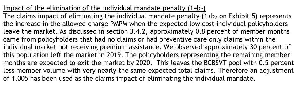 Um...yeah. The law they ended up passing last year doesn't specify how much the financial penalty would be, nor does it even require the enforcement mechanism be a financial penalty. As a result, the insurance carriers appear to be kind of ignoring it for the time being, though they'll presumably modify their 2020 request if and when the VT legislature decides exactly how they plan on enforcing the mandate.