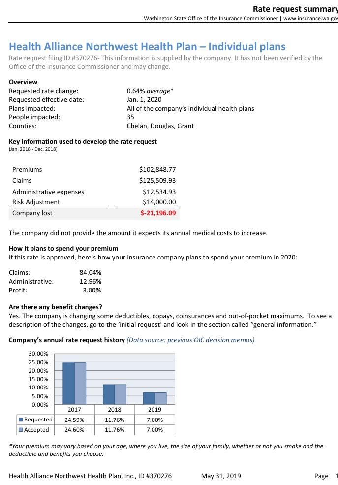 In any event, the nominal ~1% average rate increase (it ranges from a 7.3% reduction to a 10.2% increase by carrier) means unsubsidized Washingtonians will only be paying around $8/month more on average next year.