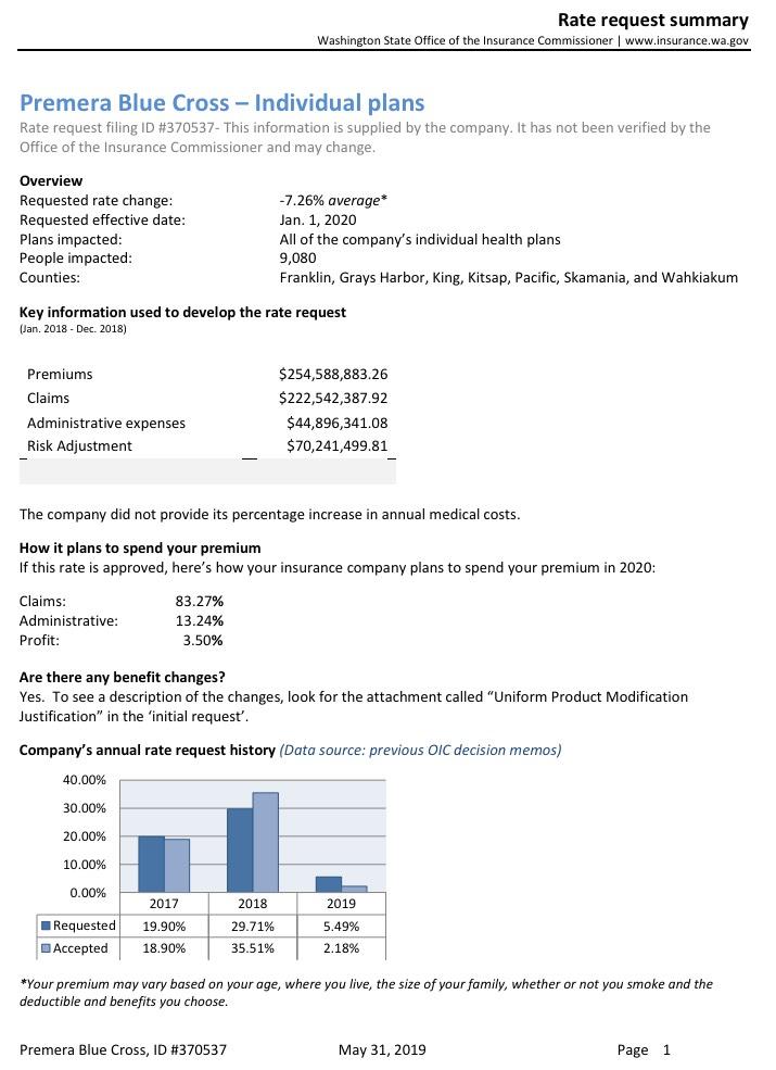 “Despite the Trump administration’s effort over the last two years to sabotage the Affordable Care Act, this year’s filings are evidence that our full adoption of the law and the steps we’ve taken to defend and preserve it are stabilizing our market,” said Insurance Commissioner Mike Kreidler. “We have more work to do to lower the cost of health care and to help lower out-of-pocket costs, but these proposed rates are welcome news.”