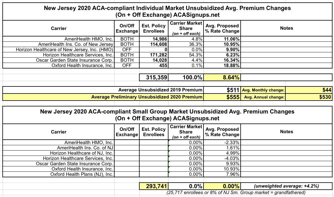 New Jersey: *Preliminary* avg. 2020 #ACA premiums: +8.6%