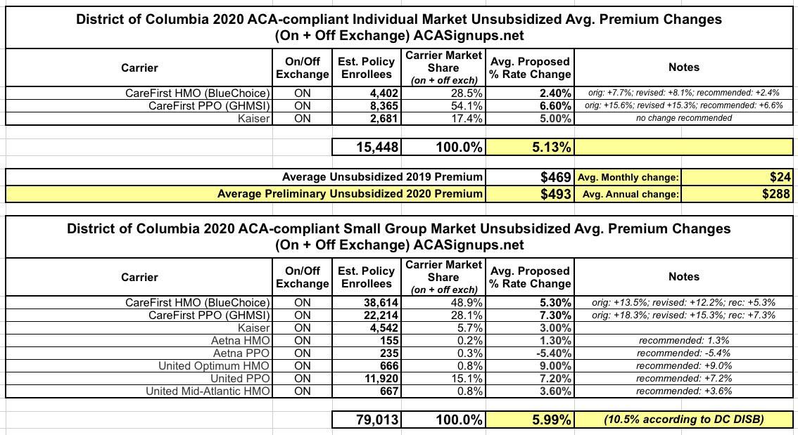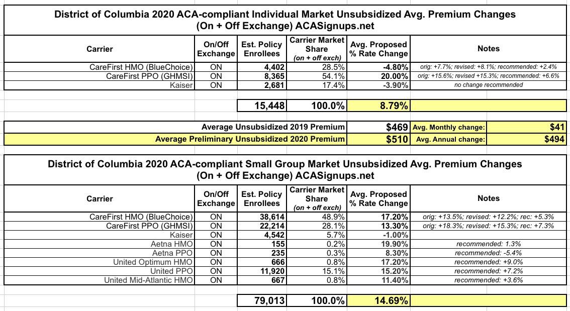 District of Columbia: REVISED avg. 2020 ACA rate hikes: 9%. Or 11.2%. Or 8.8%. Or 5.1%. Or...
