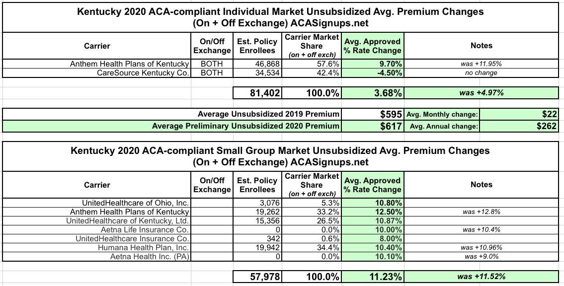 Kentucky: *Approved* avg. 2020 #ACA premiums: 3.7% increase (down from 5.0%)