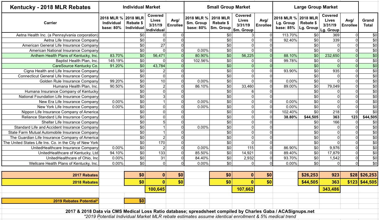 Kentucky: 363 Large Group enrollees to split $44,000 in MLR rebates