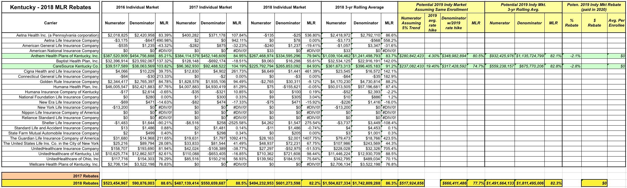 AGAIN: There's absolutely no guarantee that things will play out this way. It's possible that none of these carriers will make MLR payments next year, or only some of them will, or the amounts will be smaller. These 2019 projections are pure speculation on my part based on a number of big assumptions.