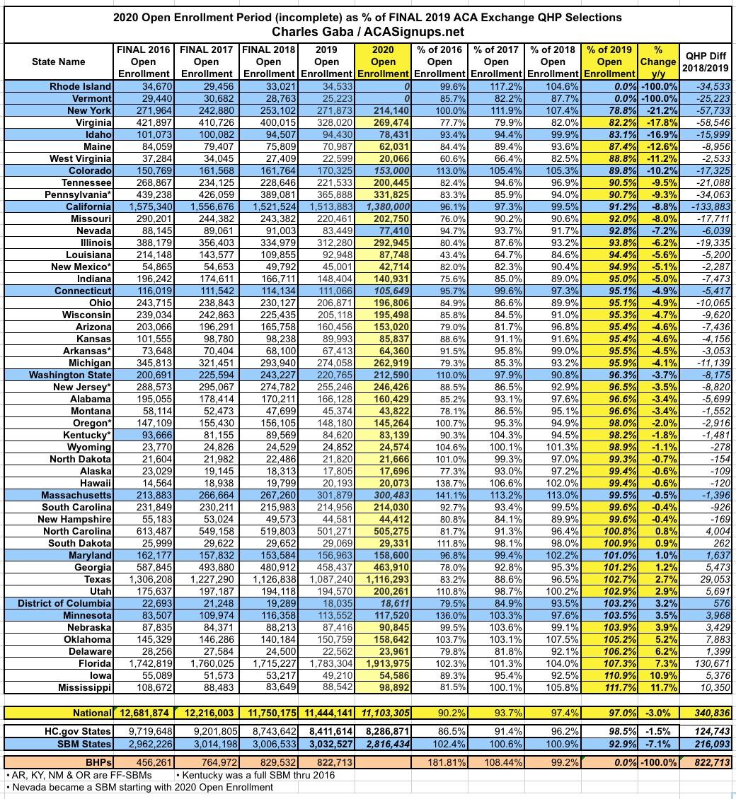 UPDATE: 2020 ACA Open Enrollment: How's YOUR state doing compared to last year?