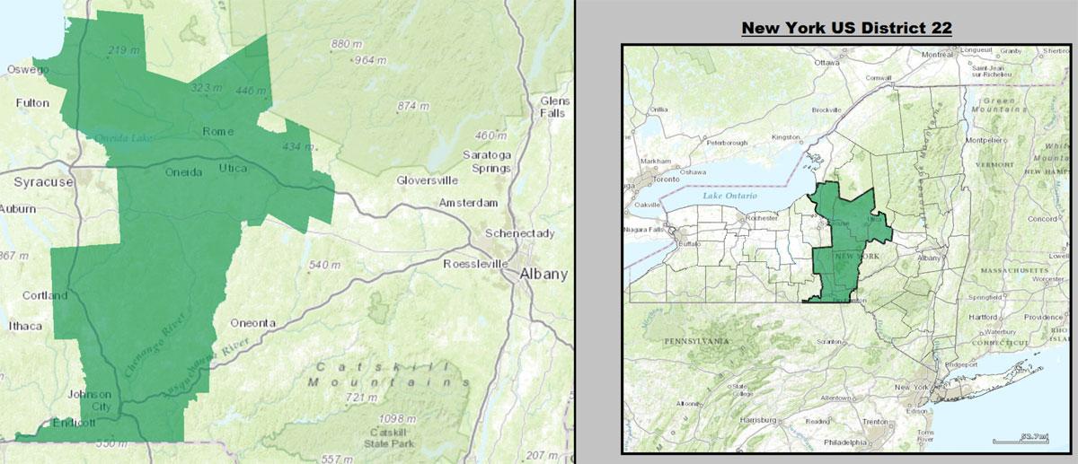 Today, I'm looking at New York's 22nd Congressional District. NY-22 is located in central New York State and is represented by Democrat Anthony Brindisi. Brindisi lives in the city of Utica: