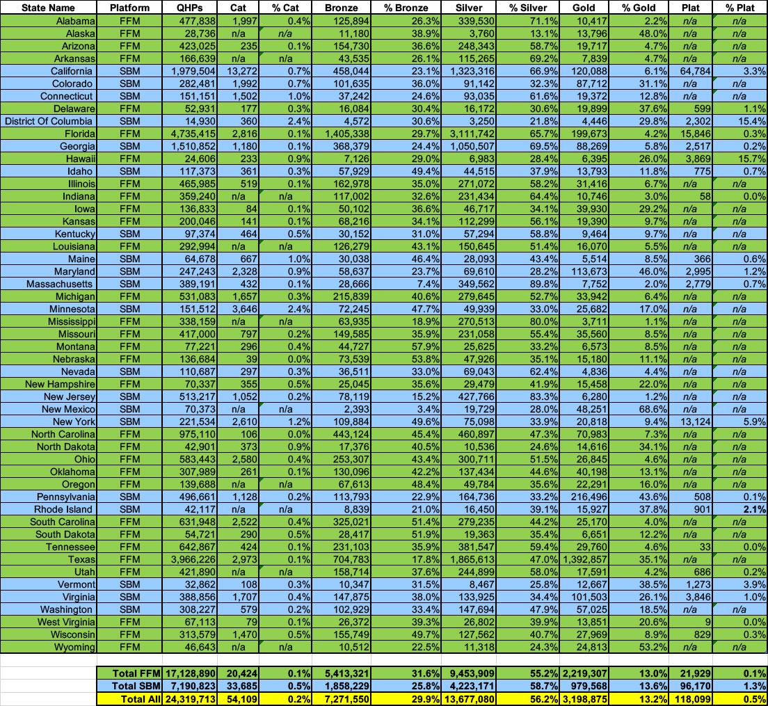 In any event, of the other three levels of ACA exchange plans, 30% chose Bronze, 56% chose Silver and the remaining 13% chose Gold plans this year nationally.