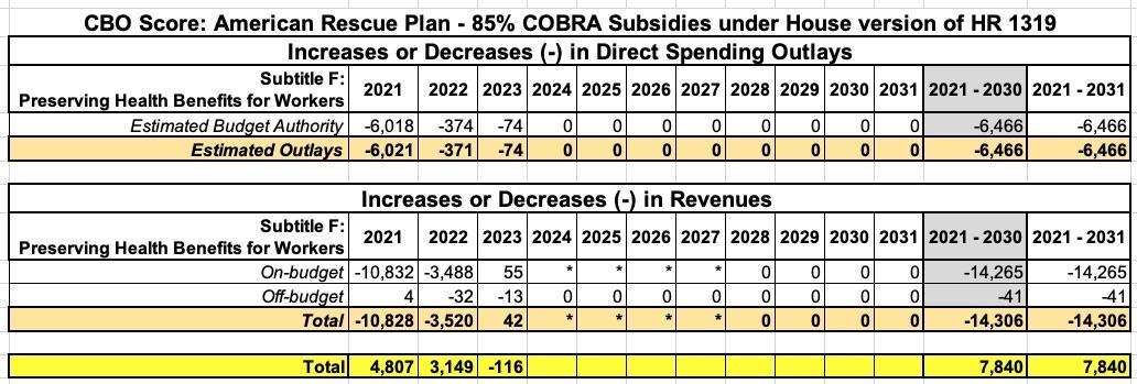 Again, I'm not a COBRA fan, and I'm not sure that I would've made the same call as the Biden Administration did, but it was a reasonable decision to make given the unique circumstances of the moment...especially given the time factor involved in getting the ARP signed.
