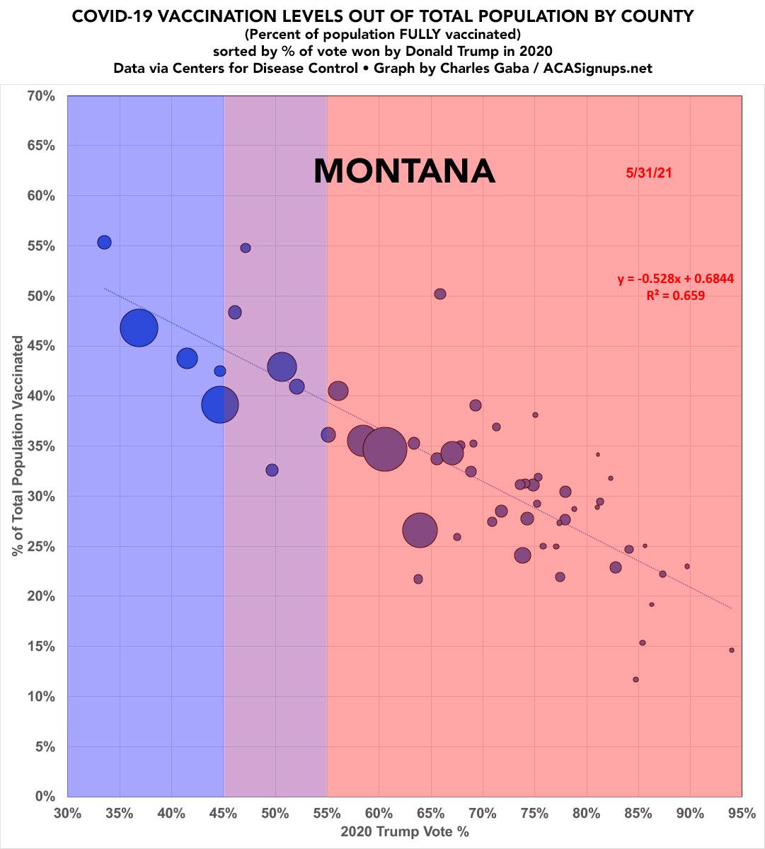 Montana: #COVID19 vaccination rates by county & partisan lean