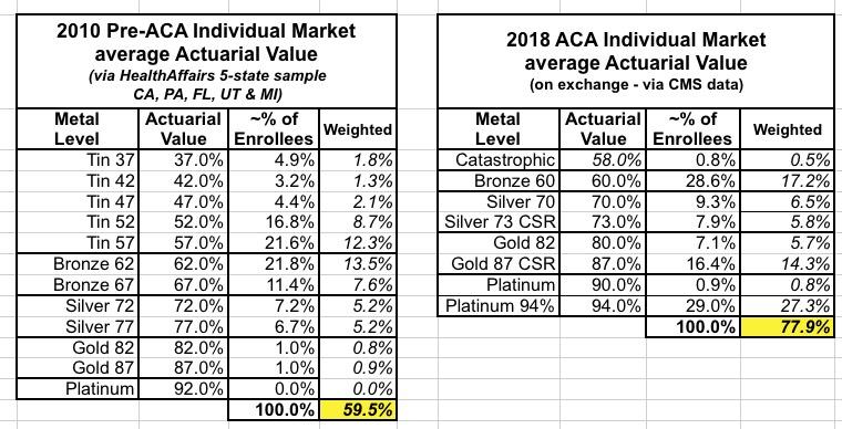 Well, again...let's take a look at the Actuarial Value of policies sold on the individual market before the ACA and today.