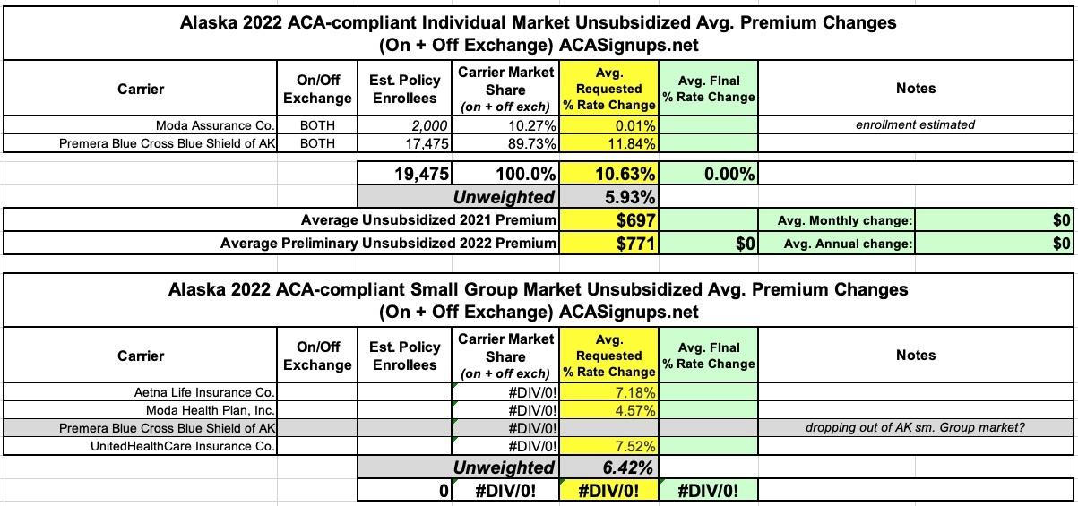 Alaska: Preliminary avg. 2022 #ACA rate changes: +10.6% indy market; +6.4% sm. group (unweighted)