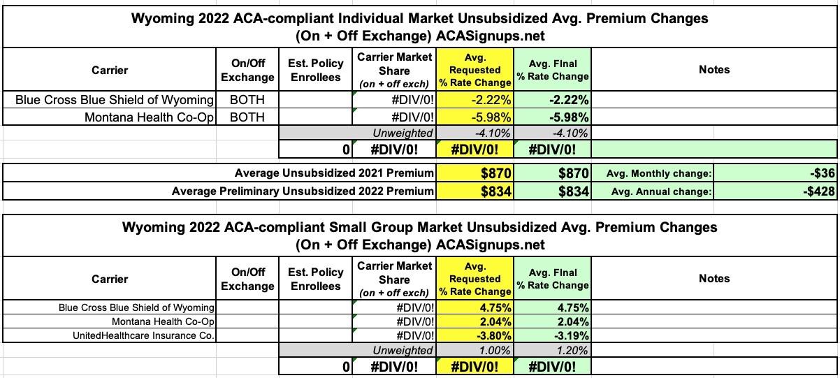 As I noted last night, thanks to the federal Rate Review website finally being updated to include the final, approved 2022 rates for both the individual and small group markets in all 50 states (+DC), I've been able to fill in the missing data for my annual ACA Rate Change Project.