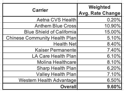 California’s Individual Market Rate Changes (weighted average)