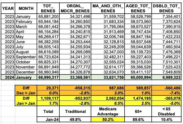 • Enrollees 65+ broke 60 million for what I'm assuming is the first time (60,000,994, up 589,857 from December)