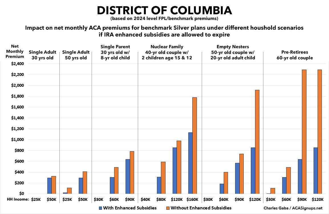 That's the macro level, however. As I did a couple of years ago when the subsidies were originally at risk of expiring in 2023, I decided to run the numbers myself to get an idea of just how much enrollees real-world health insurance premiums would go up in the event the ARPA/IRA subsidies are indeed allowed to expire at the end of next year.