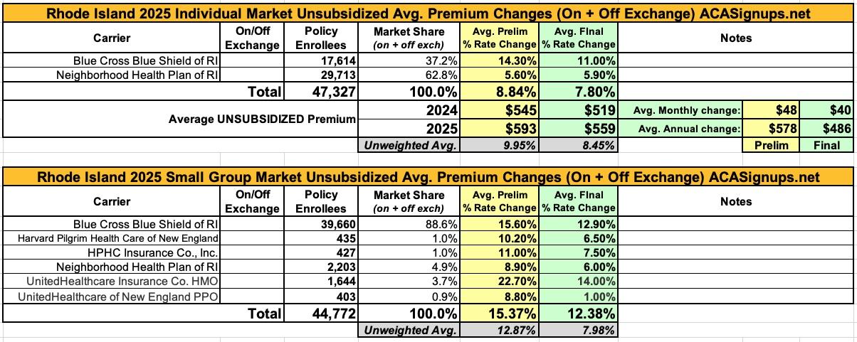 Rhode Island: APPROVED avg. unsubsidized 2024 #ACA rate changes: +7.8%