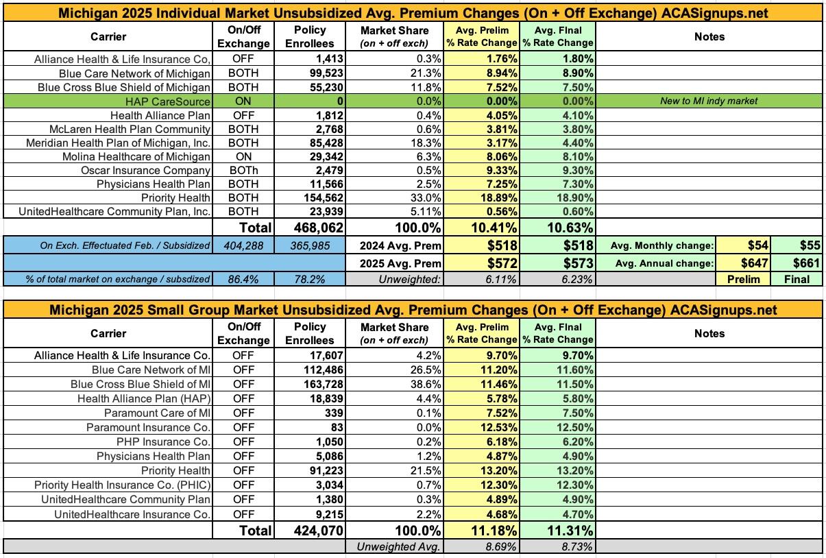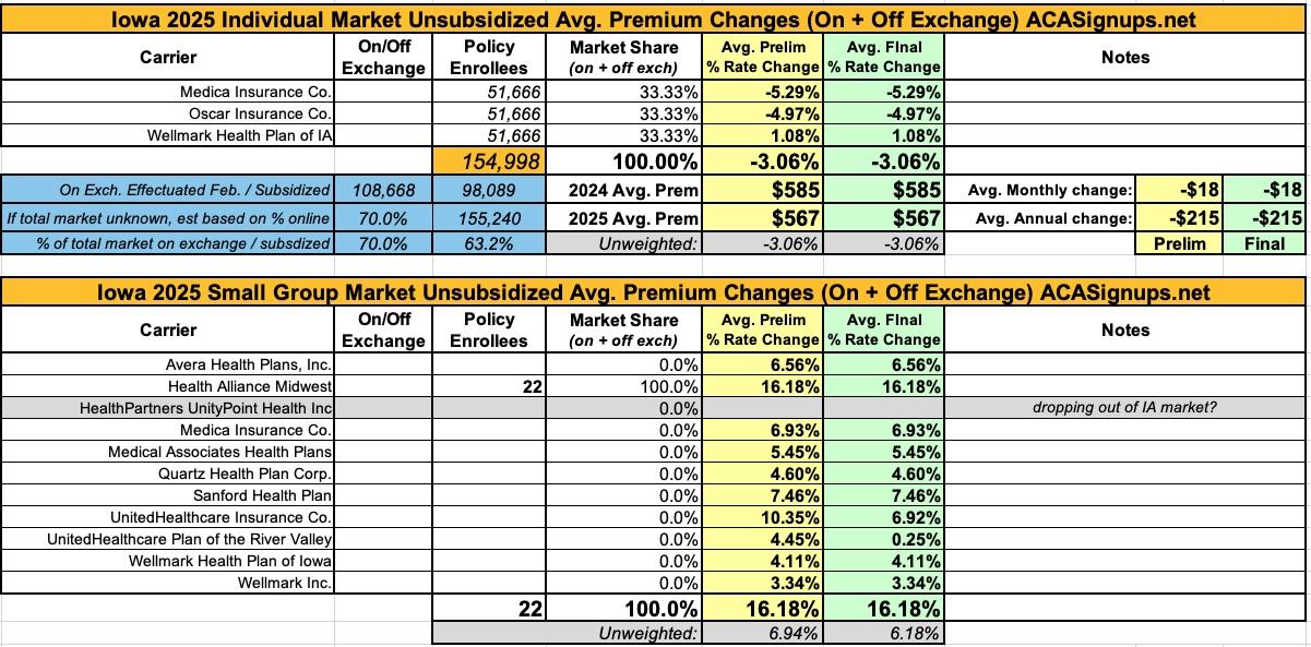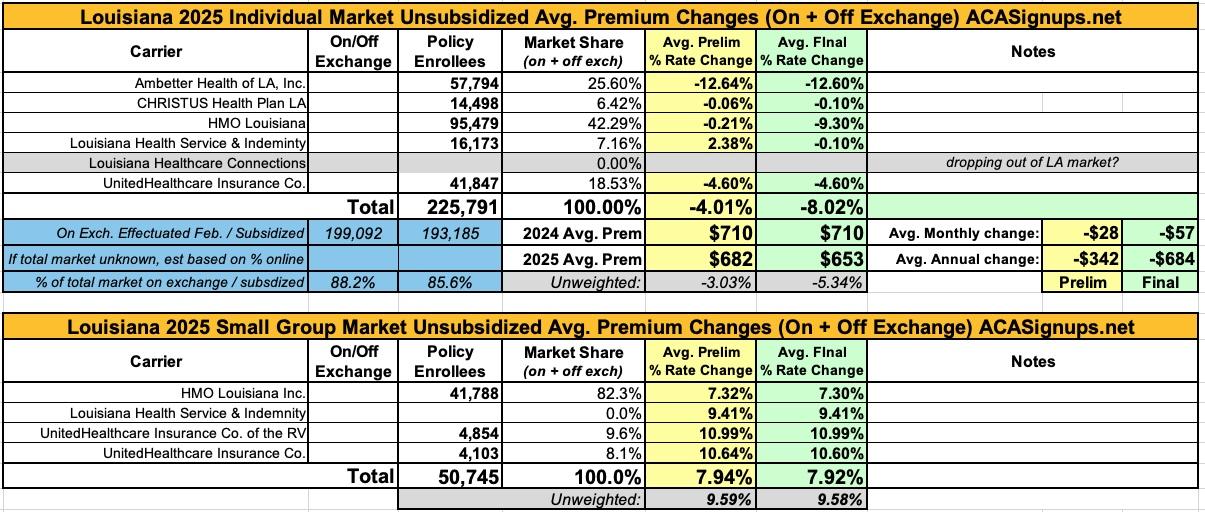Oh yeah...here's the final 2025 rate changes for unsubsidized ACA policies for the remaining states, if anyone cares.
