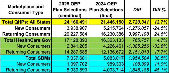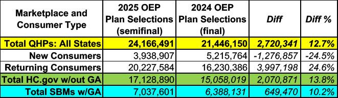 A week or so ago the Centers for Medicare & Medicaid Services (CMS) issued a semi-final 2025 ACA Open Enrollment Period report, which noted that 23.6 million Americans had selected 2025 plan year coverage via the various ACA marketplaces since November 1st...as of either January 4th or December 28th, depending on the state.