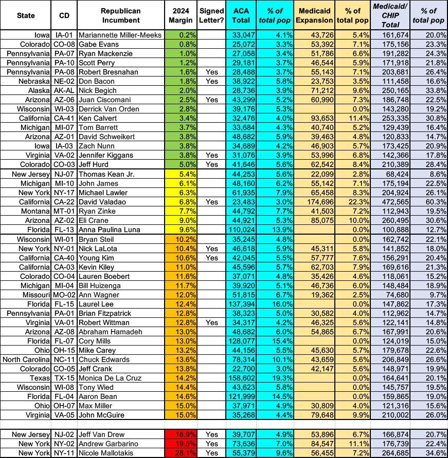 Update: Here's all 42 of those House Republicans who won by 15 points or less, along with the estimated ACA, Medicaid expansion & total Medicaid/CHIP enrollment in each of their districts:
